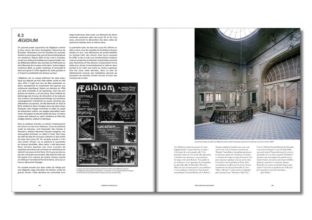 Forte du succès de son premier livre consacré aux cinémas de Bruxelles, Isabel Biver propose une nouvelle version de celui-ci. Il est actualisé et revisité en tandem avec la photographe Marie-Françoise Plissart qui a constitué un ensemble inédit d'images réalisées en divers lieux de la ville. Celle-ci a photographié les façades des anciens cinémas dans leur état actuel où la première fonction des lieux n'a souvent laissé que peu de traces. Elle a aussi fait des images des intérieurs rares de salles hors du commun encore en activité ou à l'abandon. Des documents anciens de l'âge d'or du cinéma, issus de collections privées, rappellent, en contrepoint, combien la capitale comptait autrefois de salles dédiées au 7e Art. L'autrice se penche aussi sur ce que sont devenus les cinémas aujourd'hui, les nouvelles approches et propositions pour la vision d'un film en salle : une pratique en permanente mutation.