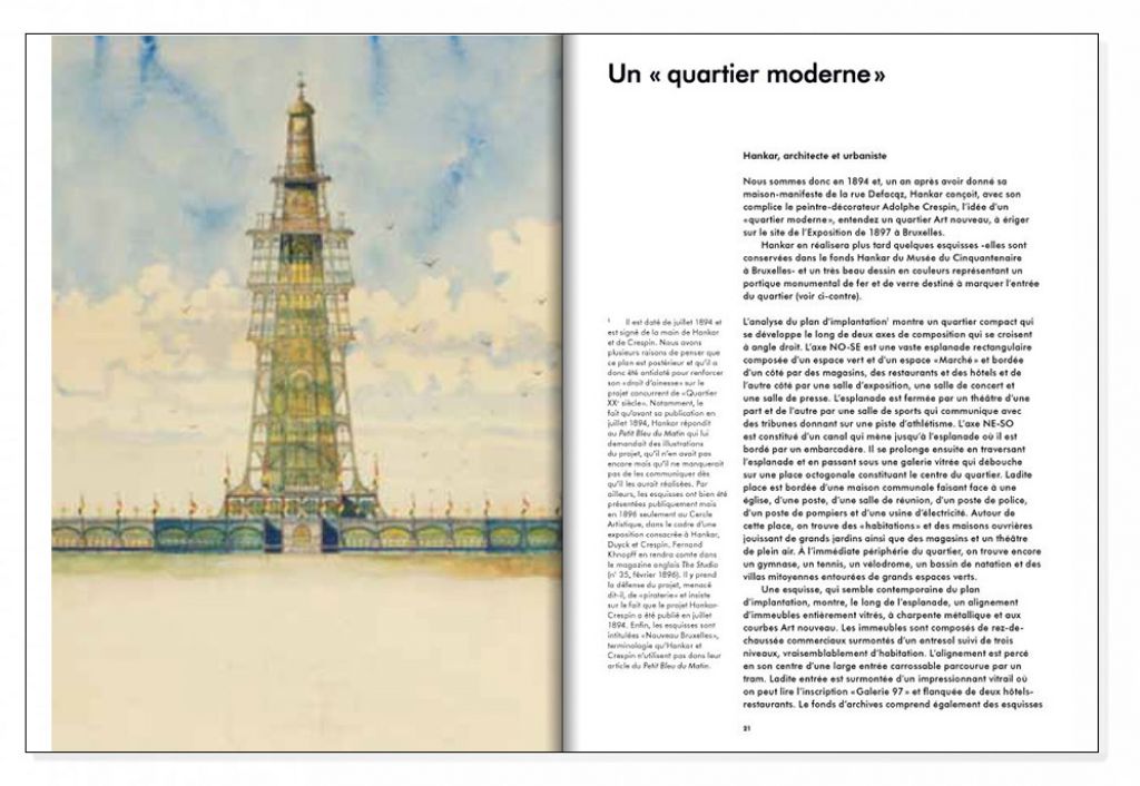 Le projet ne verra jamais le jour, ni à Bruxelles ni à Paris, mais donnera lieu à une intense polémique avec un projet «concurrent» de «Quartier XXe siècle», une polémique qui débouchera sur un procès que Hankar et Crespin perdront. L’analyse détaillée des documents d’archives et de la presse de l’époque éclaire les enjeux des débats sur l’architecture dite moderne en ce XIXe siècle finissant, où les styles néo-historiques font florès. Ce siècle au sujet duquel Viollet-le-Duc demandait s’il était «condamné à finir sans avoir possédé une architecture à lui».