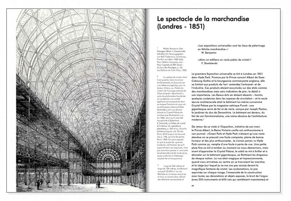 Ensuite, dans la seconde partie du livre, l’auteur s’interroge sur les Expositions universelles d’une manière plus générale et sur la criante absence de l’architecture moderne en leur sein, ceci pouvant expliquer l’échec du projet d’Hankar et Crespin. Temples de l’accumulation des marchandises, lieux du spectacle de l’innovation mais aussi de la tradition, les Expositions universelles, ont concentré bon nombre des contradictions du XIXe siècle.