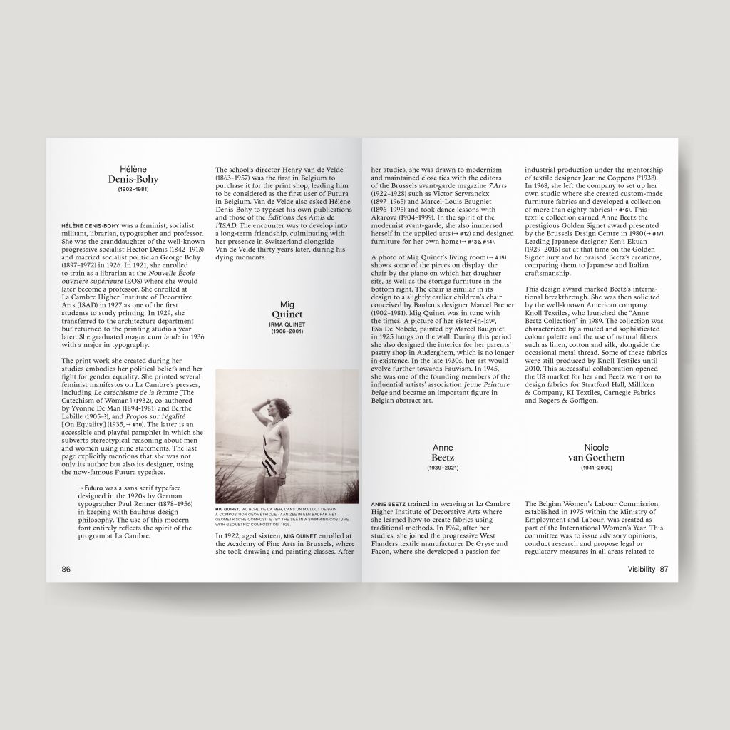 S’appuyant sur des recherches récentes, le Design Museum Brussels y a présenté des productions issues de diverses disciplines, dont les arts appliqués et graphiques, le design de produit et d’intérieur. Force est de constater que les mécanismes du patriarcat n’ont cessé de façonner l’histoire du design, suscitant l’exclusion ou l’invisibilisation du travail des femmes au sein des collections, des archives et des manuels scolaires. Parmi les femmes représentées dans le livre, des noms célèbres côtoient des figures anonymes oeuvrant dans l’ombre des contextes industriels, domestiques ou coloniaux. Basée sur une approche thématique, le livre Untold stories - Designers femmes en Belgique - Vrouwelijke ontwerpers in België - Women designers in Belgium, illustre les collaborations, les réseaux et la culture matérielle qui sous-tendent les productions des femmes plutôt que de mettre en avant des « pionnières » individuelles.