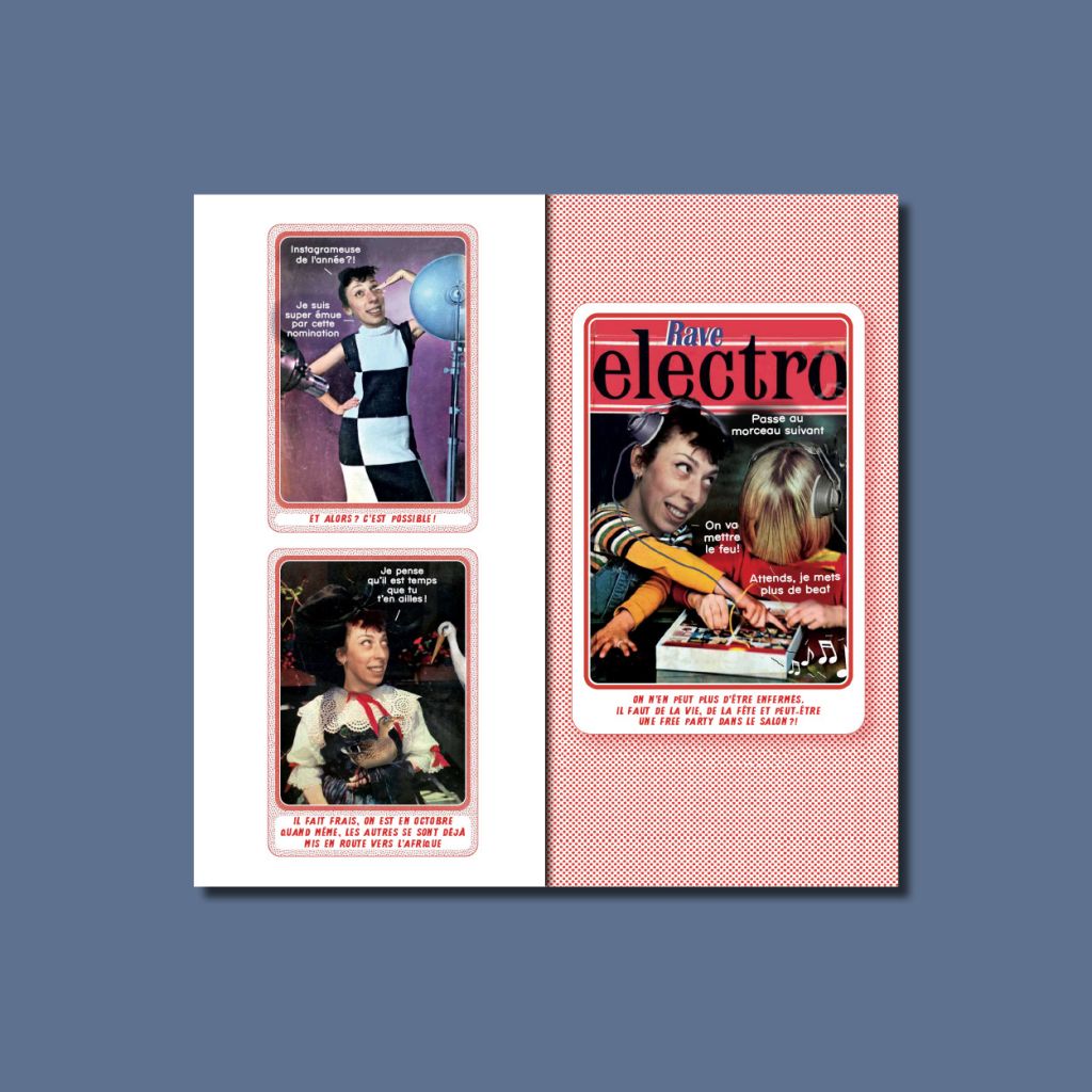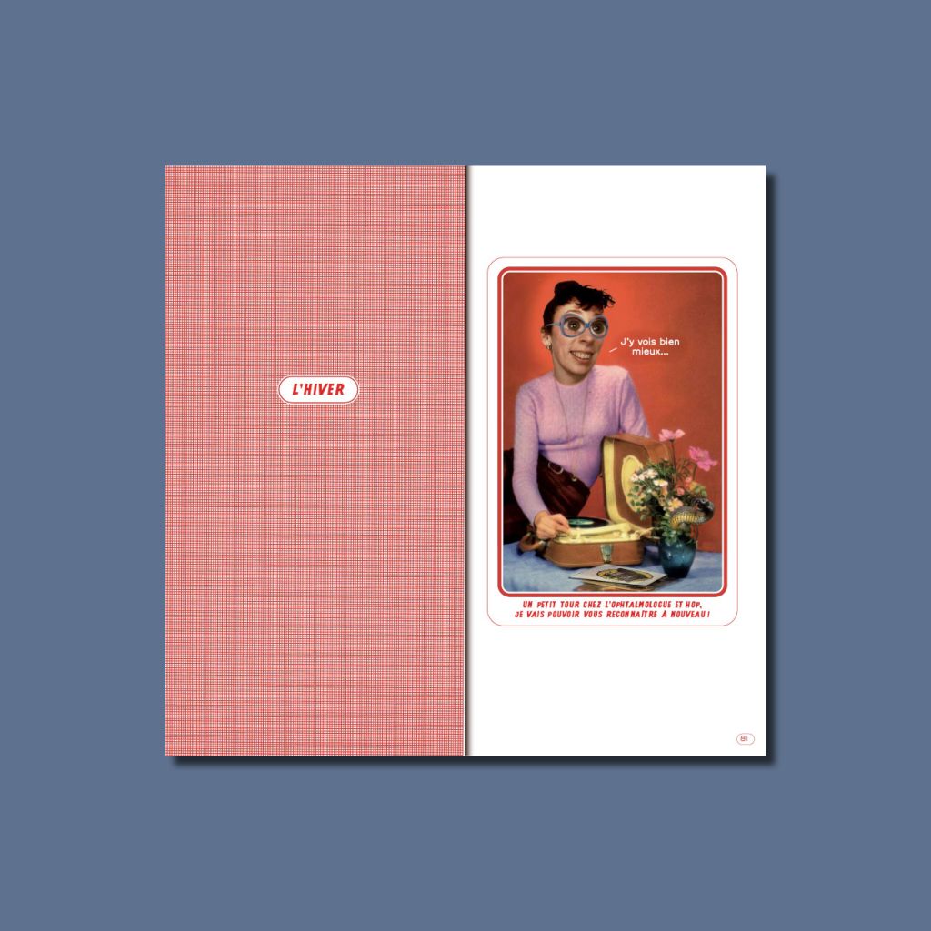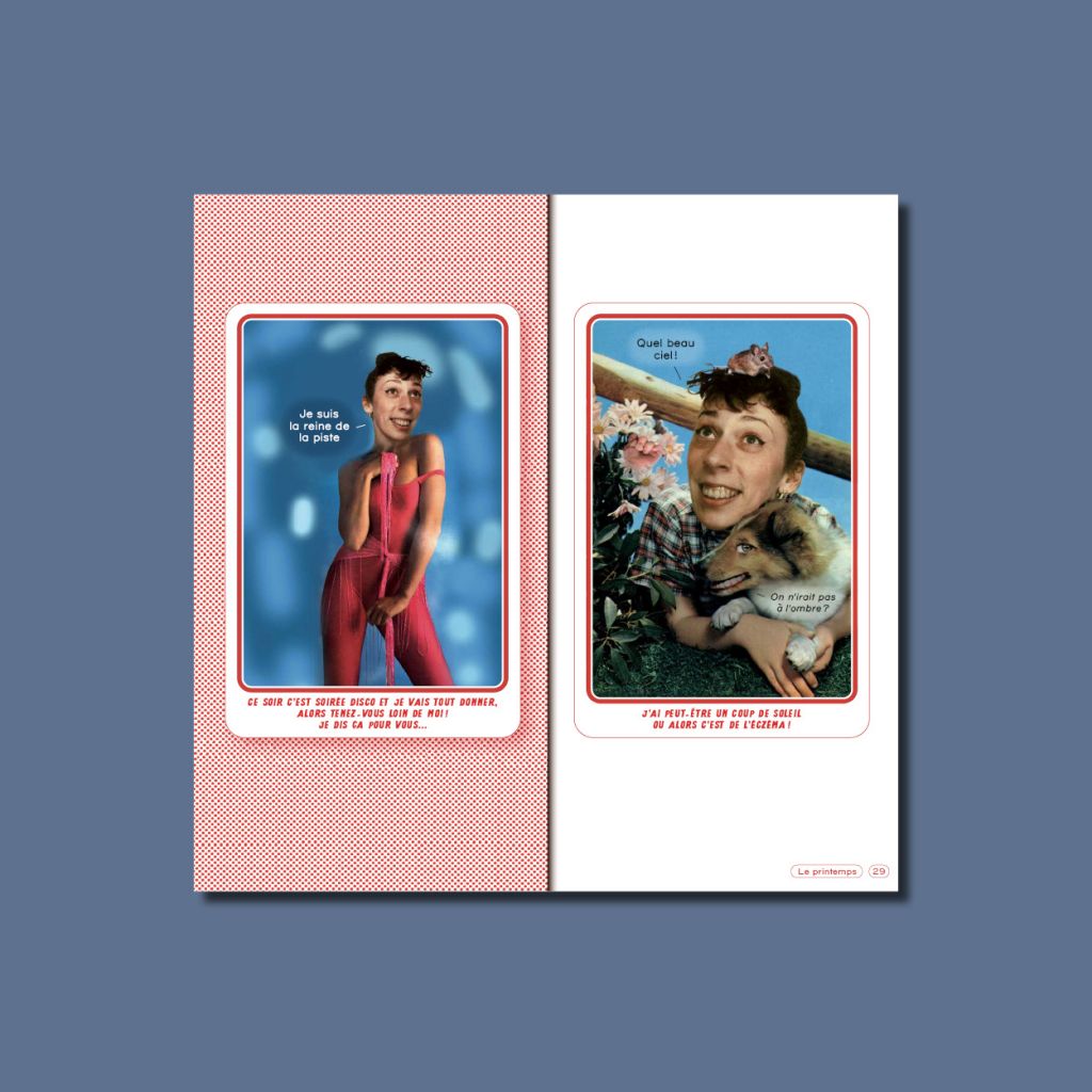 Dans Ma vie en plus beau, l’artiste détourne avec humour et esprit les images rétro des magazines et cartes postales vintage. Elle y insère son propre visage, répété à l’infini, créant un univers décalé où les stéréotypes s’effondrent joyeusement. Grâce à des montages soignés et des dialogues minimalistes ou absurdes, elle imagine des vies rêvées, des métiers fantasmés, et revisite le quotidien à la manière d’un jeu de rôle visuel. Entre clin d’œil à Cindy Sherman et hommage kitsch aux héroïnes de papier glacé, Anne Citron transforme l’ordinaire en terrain d’expérimentation artistique et féministe.