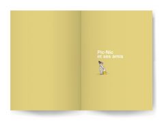 « Je m’appelle Pic-Nic, amusant comme nom tu ne trouves pas ? Je me balade toujours avec une petite valise jaune, j’y trimballe toute ma maison. Un jour, peut-être, je partirai en voyage. »