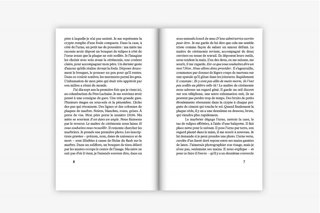 Le père d’une petite fille de cinq ans décède brutalement d’une crise cardiaque à l'âge de 37 ans. De cette histoire personnelle naît un récit littéraire qui prend la forme d’une enquête et part à la recherche de ce père disparu. C'est un livre dans lequel les époques se mêlent, les villes sont traversées (Bruxelles, Argenteuil, New York…) par le père, mais aussi par sa fille. Des trajectoires qui finissent par se confondre. À travers la description minutieuse des archives photographiques familiales, l’autrice questionne les souvenirs, déparant le vrai du faux, les fantasmes et leur reconstruction mémorielle. Émilia Stéfani-Law reconstitue une histoire, la sienne, celle de sa famille tout en méditant sur la photographie, son pouvoir et ses leurres.