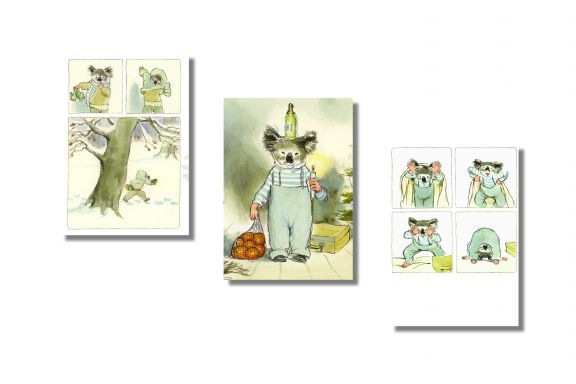 Série de cartes postales réalisées pour la sortie du livre Le voyage de Pic-Nic de Gabrielle Vincent.