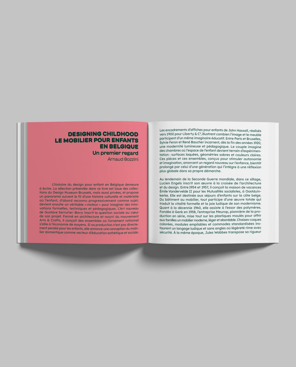 Deux textes trilingues (FR/NL/EN) viennent compléter ce projet. Le livre reflète l’esprit de l’exposition en version condensée et met en lumière la richesse des approches de grands noms du design comme celui de créateurs moins connus du grand public, mais dont les contributions méritent une mise en avant. Un objet qui se veut à la fois souvenir d’exposition, outil de découverte et témoignage d’un design attentif à l’enfance.