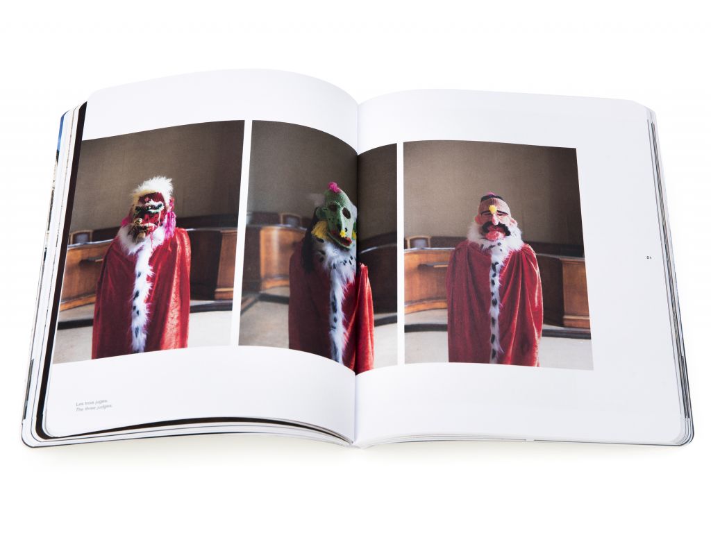 « Je suis dans mon atelier, entouré de grands sacs contenant des créatures, des dizaines de masques, des années de carnets de notes et de dessins […]. Mon regard s’arrête sur l’un d’eux, bleu avec des lanières jaunes, un sac Ikea, Frakta je crois. Dans le sac : […] tout ce qui m’a servi à façonner mon Bouc émissaire. Un costume à taille humaine de près d’un mètre nonante de hauteur tout de même… Dans la culture judéo-chrétienne, le Bouc émissaire […] expie les fautes d’un peuple entier, ça fait beaucoup de fautes à porter tout seul. Comment un être vivant peut-il être réduit à cela ? C’est violent. En tant que plasticien j’ai voulu donner forme à cette créature […], dont les incroyables aventures vous sont ici contées. » Stephan Goldrajch