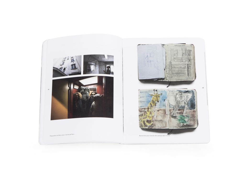 « Artiste plasticien, je crée des masques, des légendes ; j’explore une diversité de modes d’expression, pour tisser du lien entre les âges et des univers différents. À l’origine de Huit récits fondateurs, il y eut ce projet personnel, nourri d’un bel enthousiasme, proposé au Musée Juif de Belgique : Le chantier poétique, une représentation contemporaine, subjective et ouverte, de personnages et de récits extraits des Écritures. Depuis 2010, outre l’histoire de l’art, j’enseigne en effet aussi la lecture des textes bibliques aux enfants. Ce chantier particulier me tenait donc fort à cœur, car il me permettait de réunir ces deux ports d’attache et « métiers » que sont mon approche artistique et celle d’enseignant-transmetteur. […] Dans ce livre, dont l’approche doit certes énormément à ces moments vécus avec de plus jeunes, huit récits présents dans la Bible, la Torah et, pour pas mal d’entre eux aussi, le Coran, sont revisités par l’artiste que je suis. Au fil des pages, tantôt des dessins, des aquarelles ou des mises en scène réalisées au musée et en extérieur, revisitent ces histoires fondatrices dont la contemporanéité est frappante : intemporels et universels, ils nous parlent de la condition humaine, d’interactions et d’échanges entre les peuples et les cultures ; de l’essence et du sens de la vie. Le choix a été fait de privilégier certaines histoires et leurs personnages, d’en évoquer les joies et surtout les peines : Adam et Ève, l'arche de Noé, la tour de Babel, Sodome et Gomorrhe, Samson et Dalila, le Veau d’or, Élie et Élisée, David et Goliath. Ces différentes scènes ont été « jouées » par des artistes, choisis pour leur personnalité, leur engagement et leur diversité d’origines. […] Les photographies sont signées Myriam Rispens avec laquelle je travaille depuis plusieurs années en constant dialogue et à quatre mains. Le professeur Thomas Gergely, grand humaniste, directeur de l'Institut d'Études du Judaïsme à l’Université libre de Bruxelles, que nous avons rencontré en mars dernier pour ce projet de livre, nous fait ici l’honneur de commenter les huit récits fondateurs. » (S.G.)