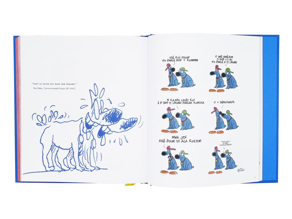 Froud et Stouf sont deux petits chiens bleus (un peu) philosophes à l’allure sympathique et débonnaire créés par Frédéric Jannin (dessins) et Stefan Liberski (scénario). Froud et Stouf conversent et portent un regard amusant et amusé mais toujours pertinent sur le monde qui les entoure. Deux albums de bande dessinée sont sortis par le passé, il était temps de rendre à nouveau disponible les discussions décalées et drôles de nos chiens belges dans une édition qui leur rend hommage. Ce volume reprend la plupart des planches déjà parues dans Les gens adorent et Waf waf auquelles s’ajoutent les planches parues dans Spirou et ailleurs ainsi que de nombreuses planches inédites.