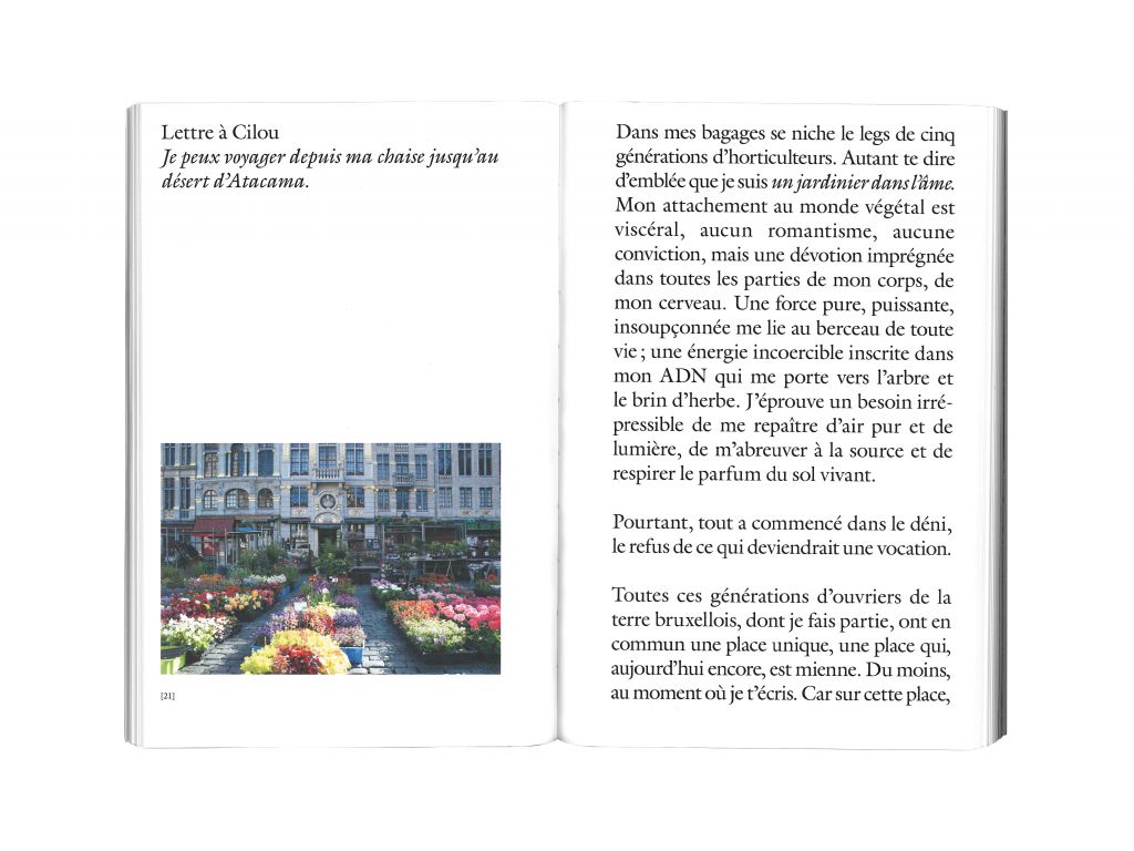 Son écriture, vive et sincère, nous fait découvrir toute la richesse de son métier. Il raconte l’histoire d’une famille laborieuse et croque le portrait de ses clients, habitués ou occasionnels, touristes ou bruxellois. Son récit est porté par le désir de transmettre une expérience de vie singulière.