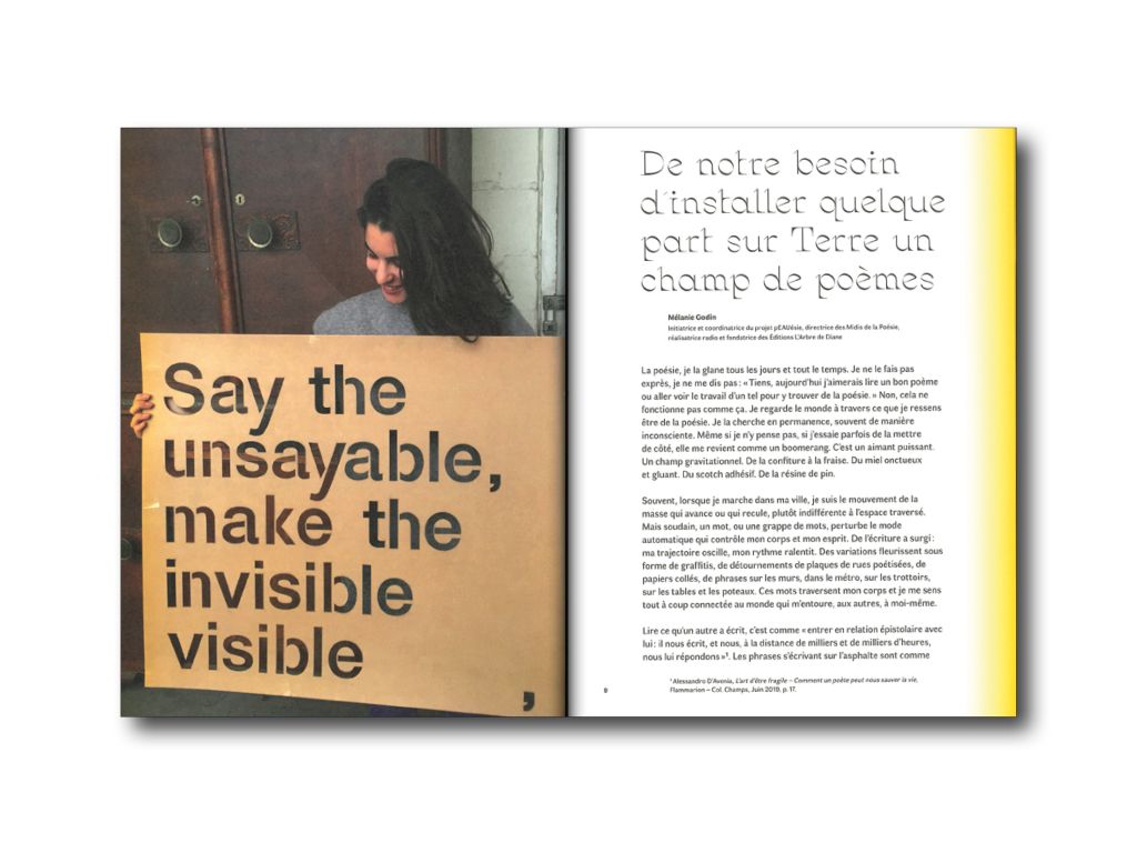 Ce livre retrace un voyage singulier dans la ville. À travers les photographies et les textes inédits qui jalonnet les pages, il est témoin d'une aventure collective , une race tangible de ces poèmes éphémères aujourd'hui disparus.